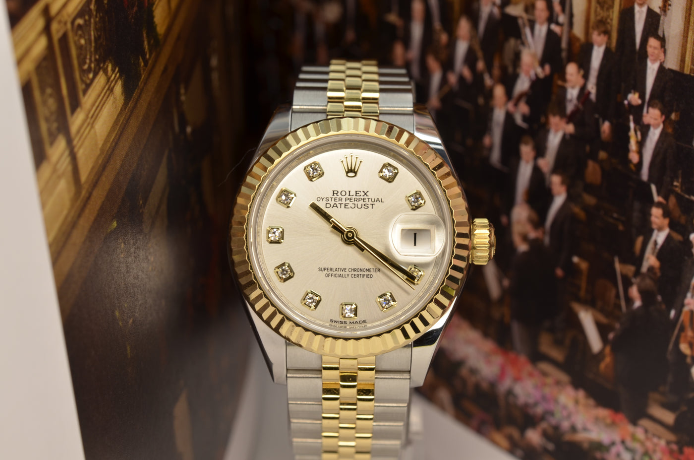 The Rolex Lady-Datejust Ref. 279171 is an elegant and timeless women’s watch that embodies classic sophistication and modern luxury. Crafted from a combination of Everose Rolesor (stainless steel and 18 ct Everose gold), it features a 28 mm case, a fluted bezel, and a refined Jubilee or Oyster bracelet. The dial options—ranging from chocolate, silver, or mother-of-pearl—are accented with diamond hour markers or classic Roman numerals